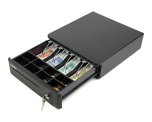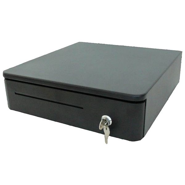 Горизонтальный металлический денежный ящик с 3-позиционным замком и обратной связью.